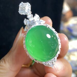 宝钗一面看宝玉头上戴着累丝嵌宝紫金冠,额上勒着二龙捧珠抹额,身上穿着秋香色立蟒白狐腋箭袖,系着五色蝴蝶鸾绦,项上挂着长命锁、记名符,另外有那一块落草时衔下来的宝玉。宝钗因笑说道:“成日家说你的这块玉,究竟未曾细细的赏鉴过,我今儿倒要瞧瞧。”说着便挪近前来。宝玉亦凑过去,便从项上摘下来,递在宝钗手内。宝钗托在掌上,只见大如雀卵,灿若明霞,莹润如酥,五色花纹缠护。