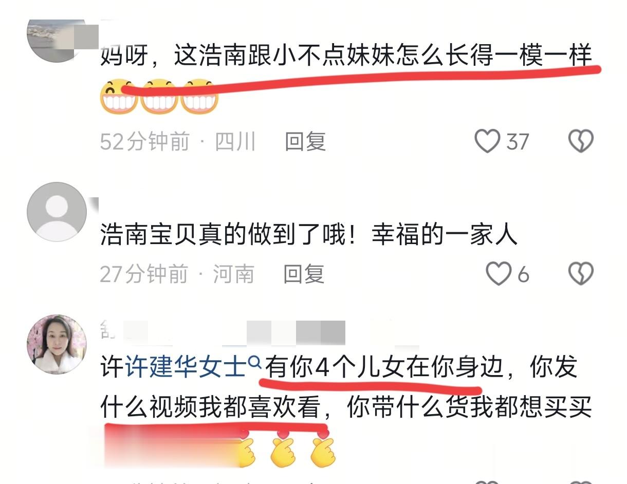 许健华和四个孩子拍全家福,她的头像也用的这张照片,非常的喜庆,没有老谢参与,评论区全是祝福。
