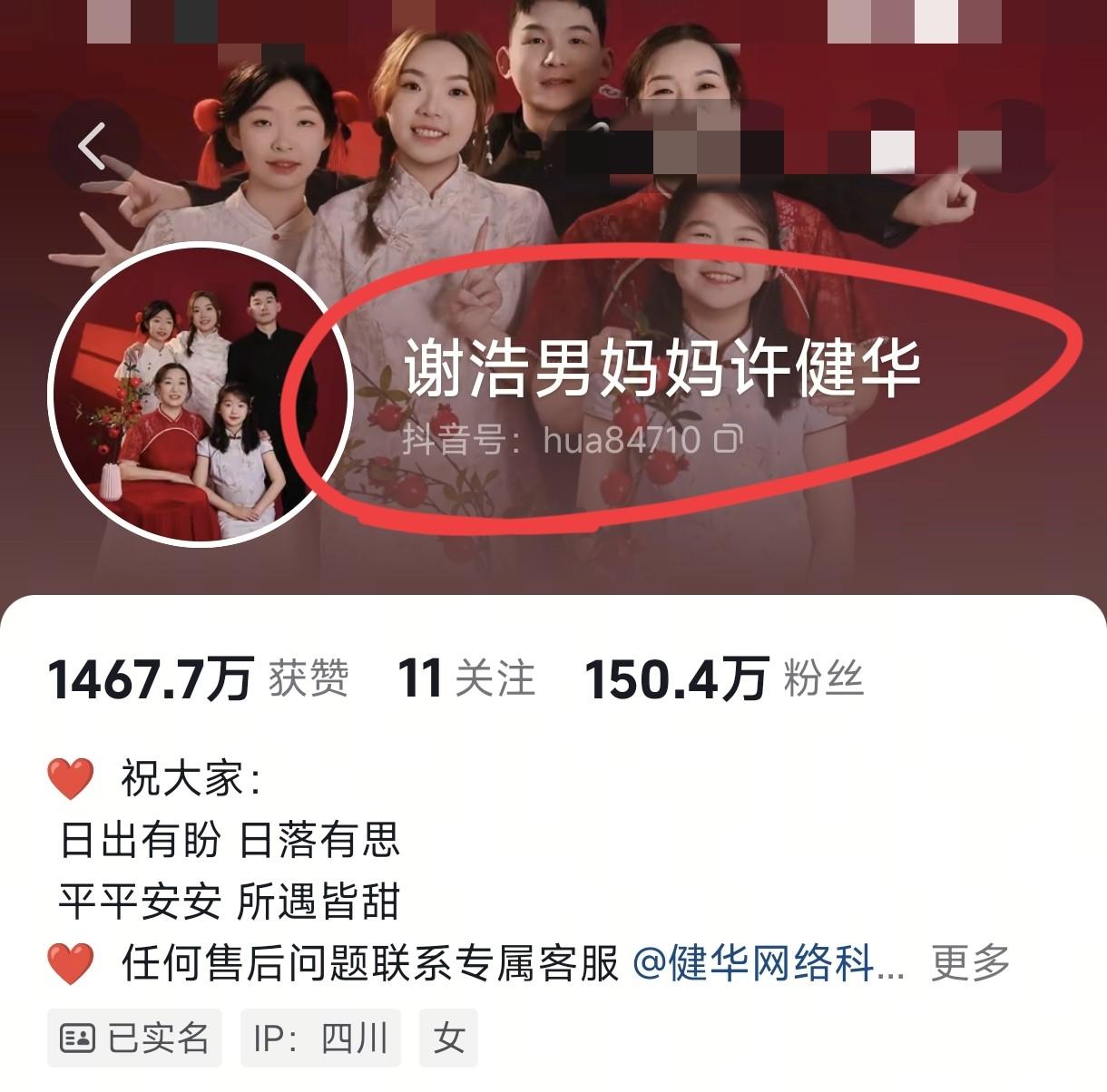 许妈也非常喜欢全家福这张照片,她已经把这张照片当做个人账号的图片,在春节这个全家团圆的节日里,这种红色的图片显得特别喜庆。