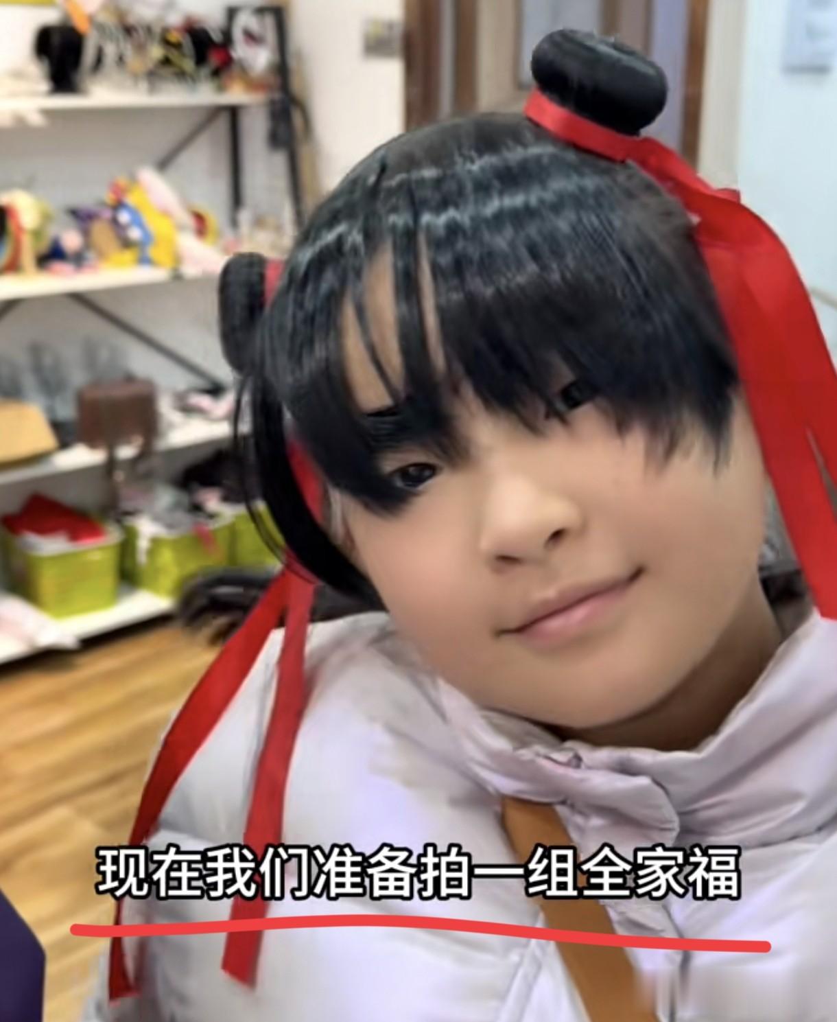 就在大年初二的晚上,许健华、谢浩男、谢炜琳三人共创了一个视频,他们一起去照相馆拍了全家福。