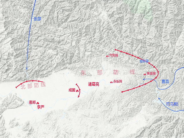 诸葛亮亲自坐镇汉中东部防线,是为了抵御曹真和司马懿,阻止曹军进入汉中平原。