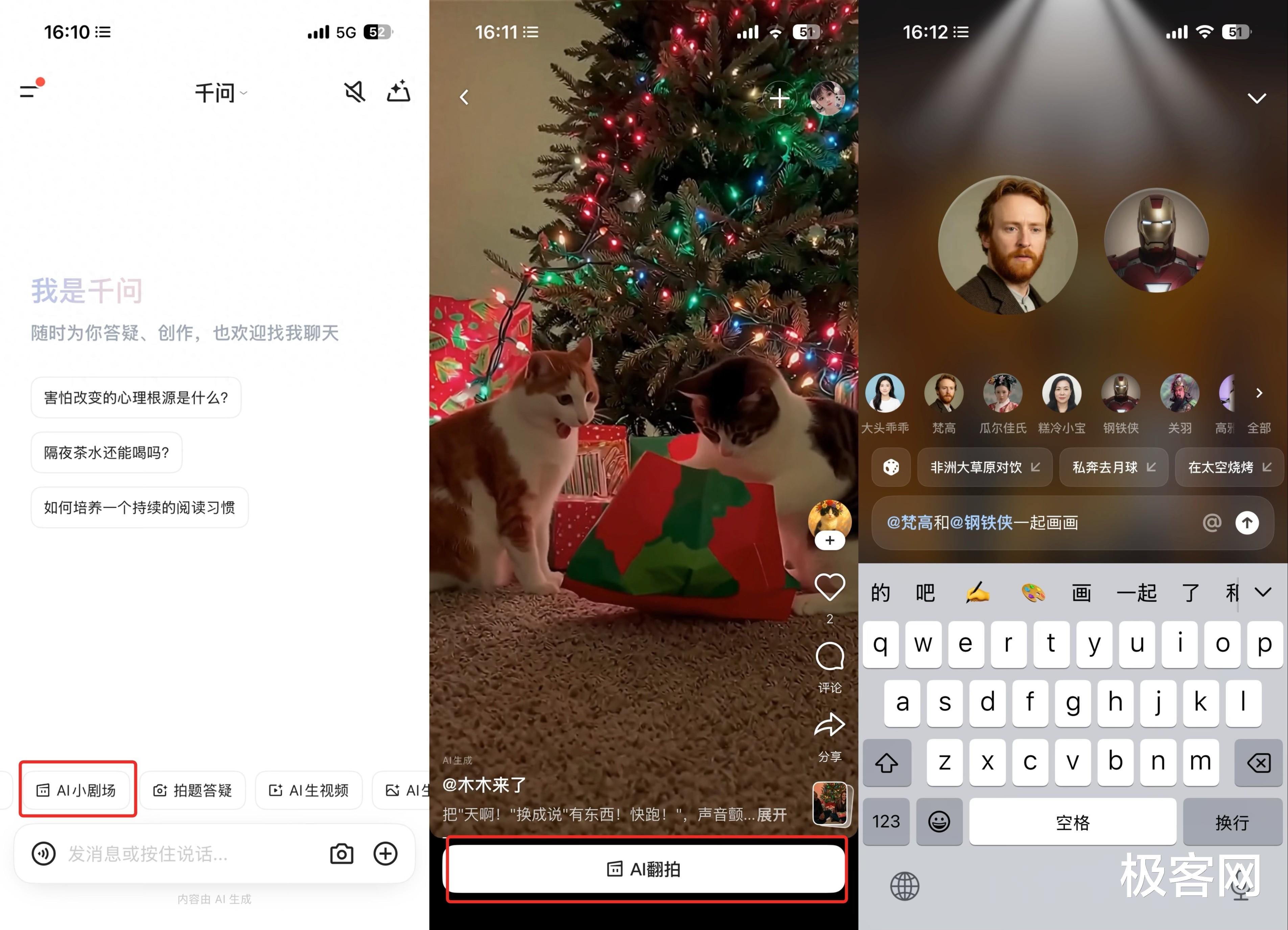 在“AI小剧场”内,用户可创建专属数字分身,与好友或平台内公开形象共同出演AI生成的短片。实测显示,仅需输入一段简单提示词,千问APP即可自动生成剧情丰富、多镜头切换、并同步匹配台词和音效的AI短剧。更有趣的是,用户还能邀请好友合拍,共同演绎经典影视桥段、职场吐槽、生活趣事等多样化场景。
