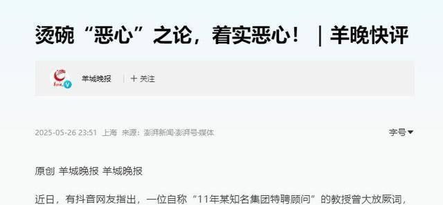 羊城晚报:2025-05-26《烫碗“恶心”之论,着实恶心!|羊晚快评》
