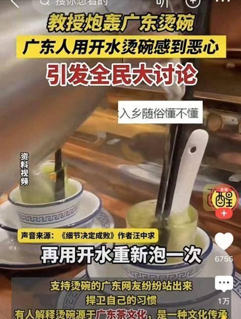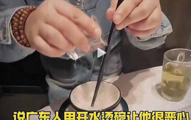 视频中,他不仅对广东人用开水烫餐具的行为提出批评,甚至用了愚蠢、恶心这样非常粗鲁的措辞。