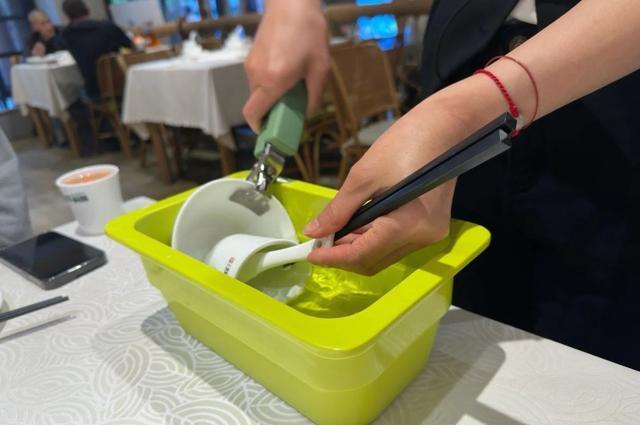 走进广州、深圳的大多数酒楼,无论是高档餐厅还是街边排档,服务员通常都会在客人就座前主动端上热水盆,甚至专人为顾客冲洗餐具。
