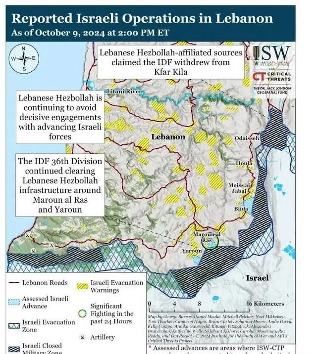 从进攻方向上来看,以军的主要进攻目标就是黎巴嫩西海岸的提尔,还有就是爱尔兰维和部队的防区里面有一个宾特朱贝勒。估计以色列军队也抱着想要一举洗刷2006年没能拿下宾特朱贝勒的“耻辱”。