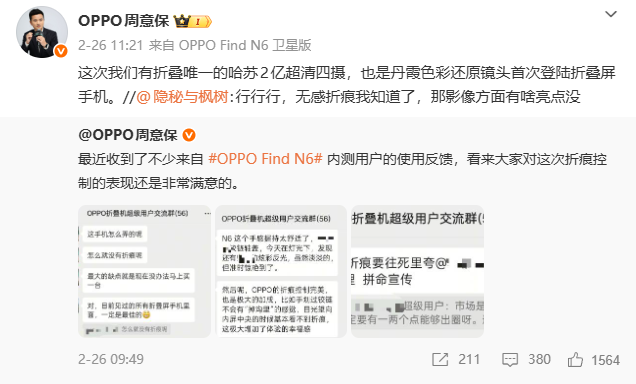 此外据博主数码闲聊站爆料,某国际大厂今年晚点的无感折痕折叠机也跟这几家供应商高度重合…… 而OPPO能做到抢先领跑,也证明了OPPO在折叠屏领域技术的领先!