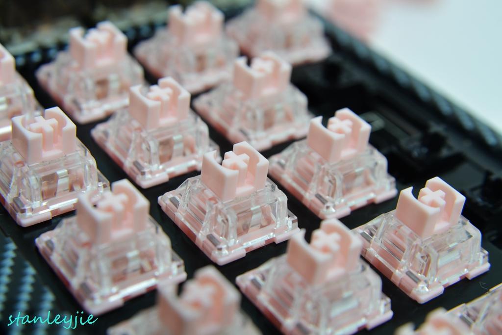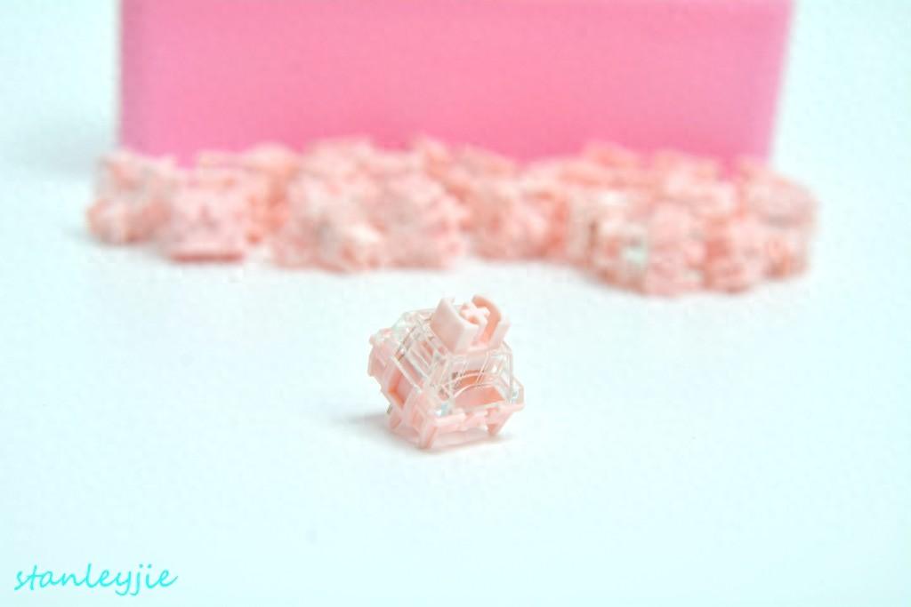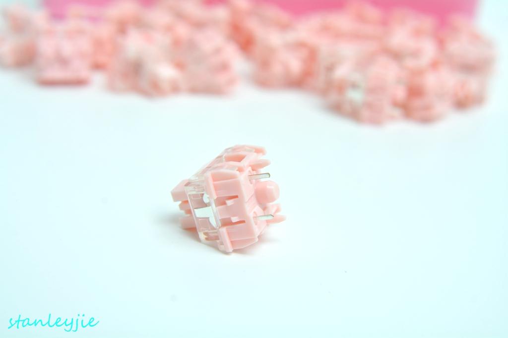 ▲轴体颜色基本全粉,论粉嫩少女心的程度可以在TTC自有轴体里排前三。粉色的十字轴芯,带有防尘壁,扩大了粉色的面积。