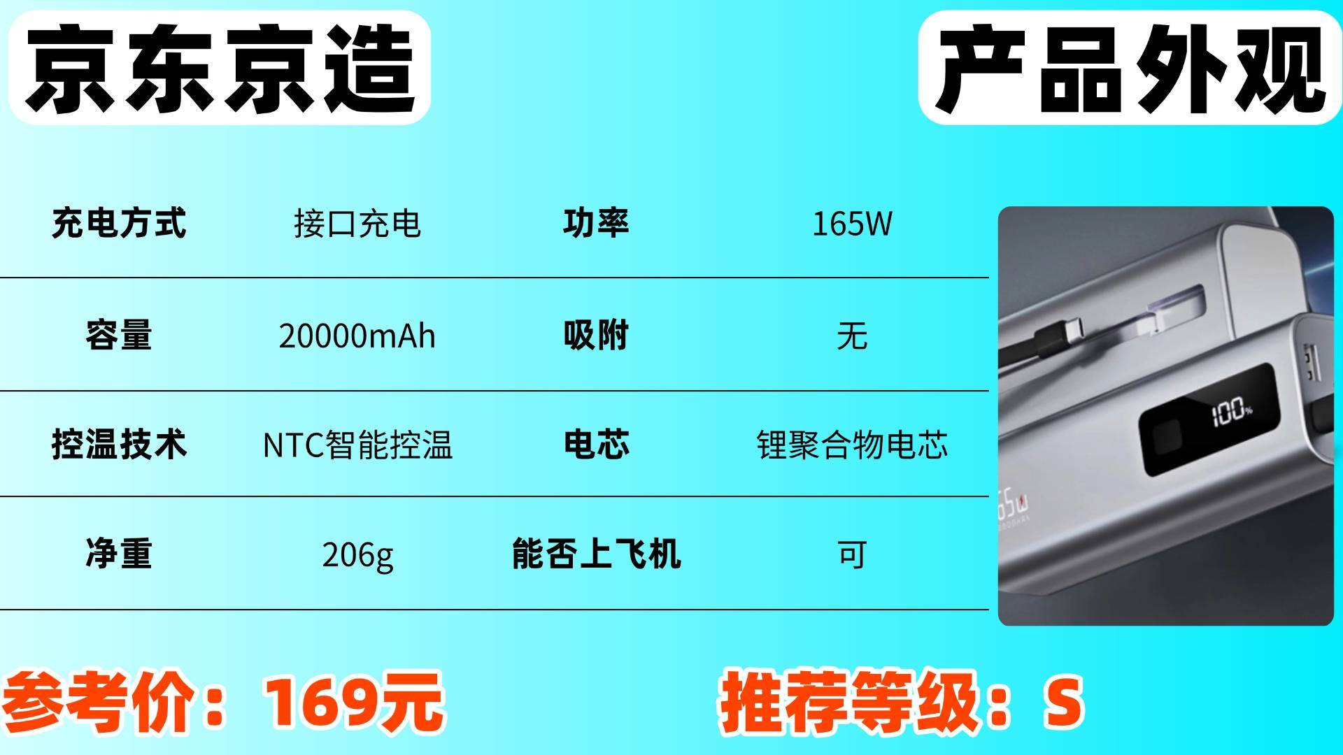 品牌4:京-东京造JZ130w充电宝 (参考售价:246¥)