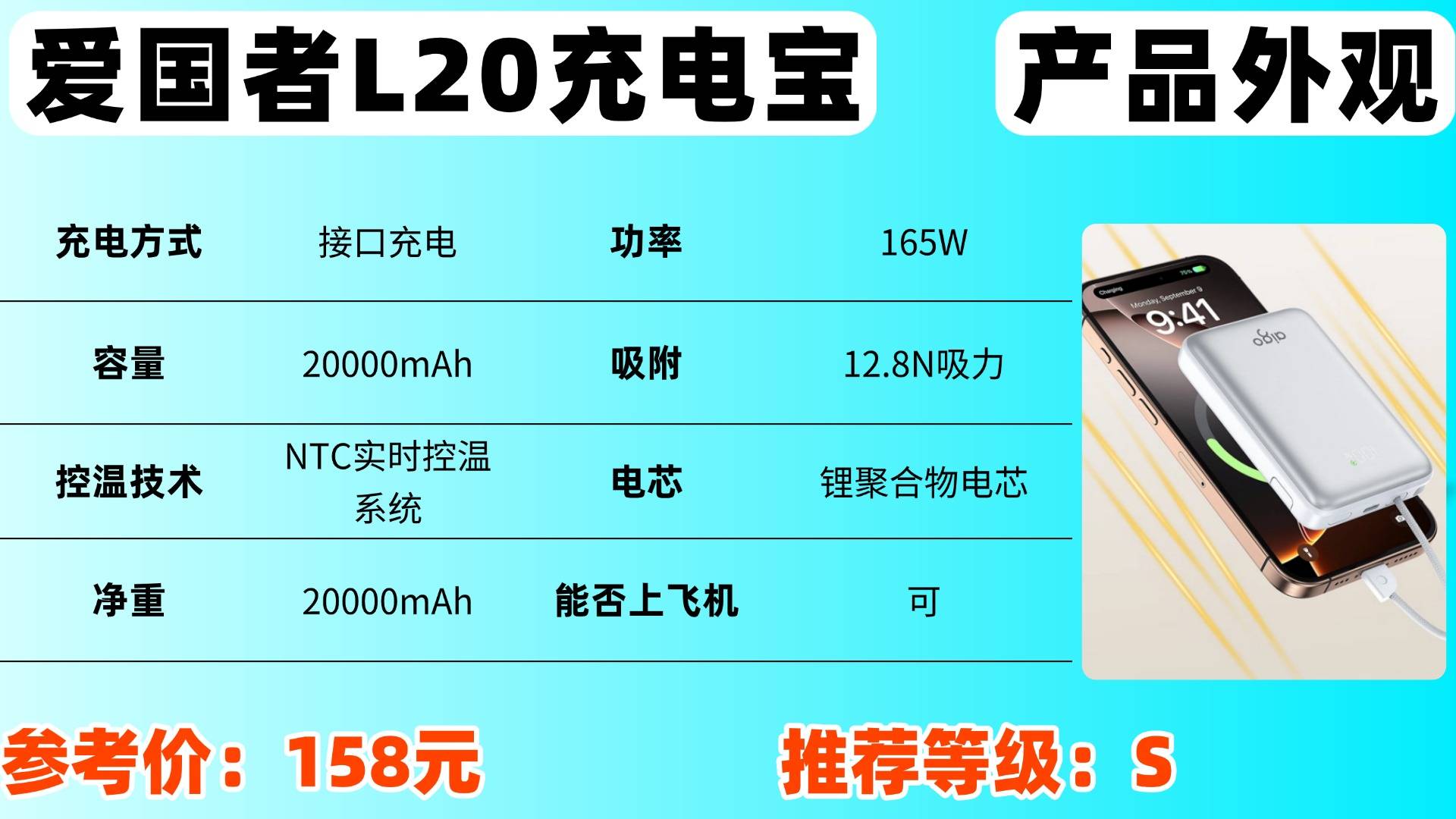 品牌6:爱-国者L20充电宝 (参考售价:158¥)