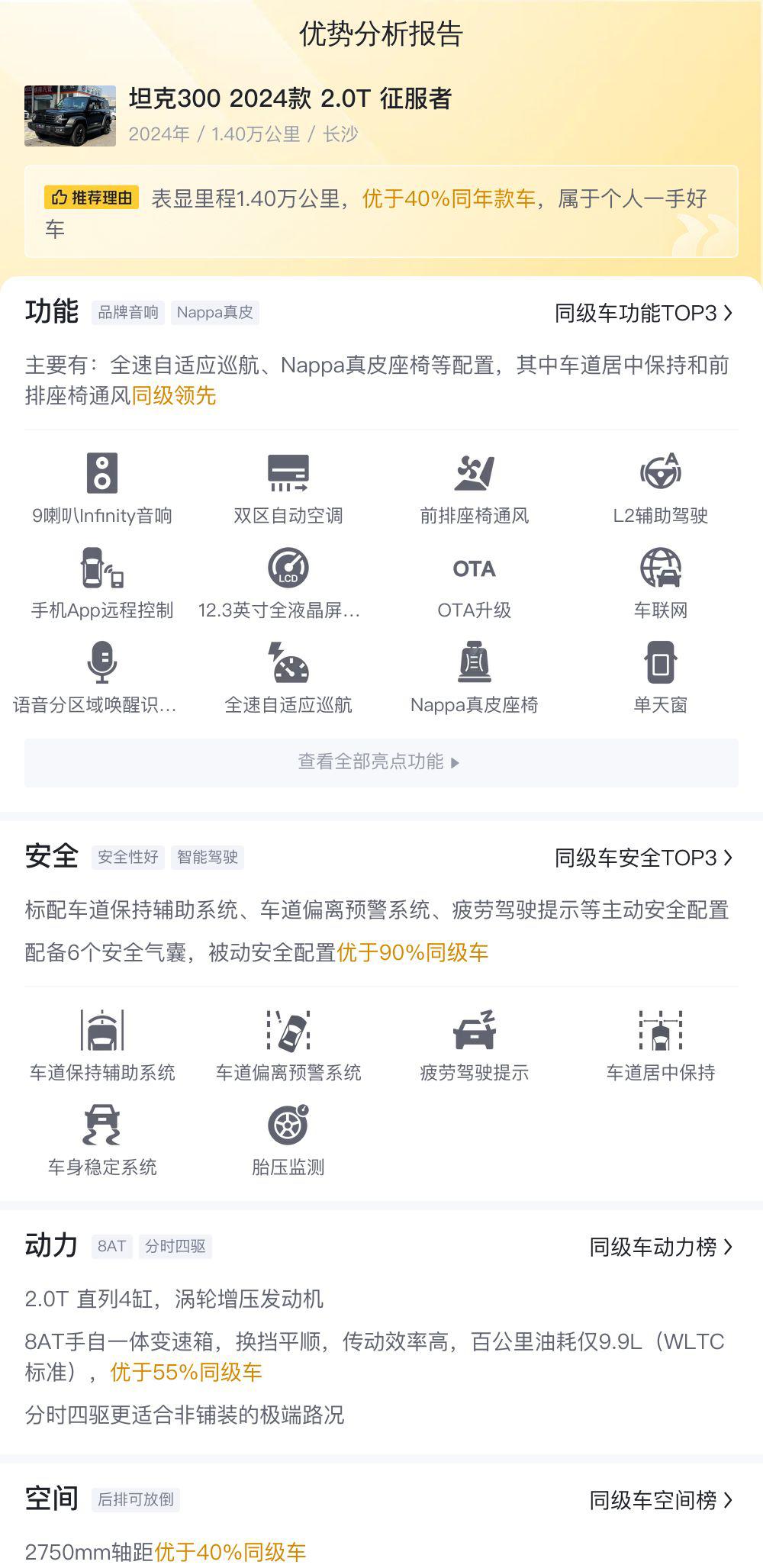 总的来说,坦克300是一款特点鲜明的SUV。它既能满足你对越野的渴望,也能兼顾日常通勤的需求。如果你追求个性,热爱冒险,又对价格比较敏感,那么二手坦克300或许是一个不错的选择。