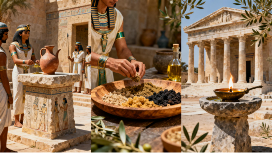 古埃及文明同样对油有着独特的敬意。考古分析表明,木乃伊制作中常使用亚麻籽油、蓖麻油、松脂等混合物,这种“神圣油脂”既能防腐,也被视为灵魂回归的通道。考古学者R. Buckley等人在《Nature》期刊上发表的论文中,通过化学分析确认了古埃及木乃伊包裹物中存在植物油脂成分,证明油脂在古埃及的使用不仅为实用,更是宗教性的象征。油灯则是另一种跨越文明的共同发明。埃及墓室壁画中,常描绘贵族手持油灯祭祀的场景;希腊神庙里,橄榄油灯燃烧不息,被视为神的光明;在罗马,橄榄油更是生活必需品,既用于烹饪,也用于沐浴、疗伤、点灯。罗马诗人维吉尔称其为“神赐之液”,罗马人甚至将橄榄油作为贸易货币,形成跨地中海的经济网络。