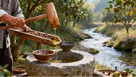 油的技术进步与社会形态密切相关。榨油的出现,标志着机械利用的成熟。最初,人们用石碾与木杵捣碎果实,再以布帛包裹压榨;后来出现木榨与杠杆装置,出油量显著提高。宋代以后,榨油工艺已广泛应用于民间,明代更形成油坊作业制度。油坊不仅是生产场所,也是社交与信息交流的中心。清代《大清会典事例》载:“油坊照户纳税”,显示榨油已成为重要产业,进入国家税赋体系。