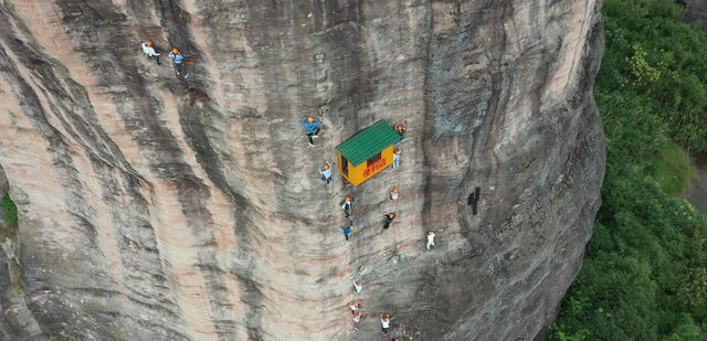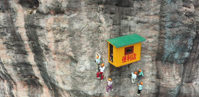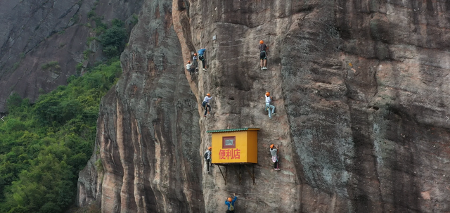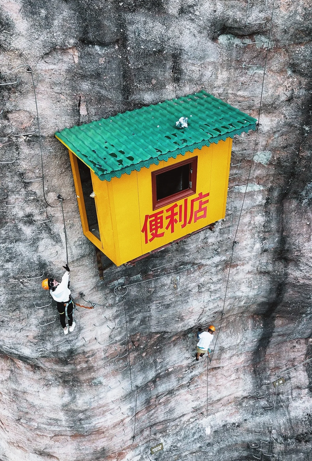 每天,景区的年轻攀岩教练会背着装满饮料食物的背包,沿着崖壁攀爬而上,每隔一两天补充一次货品。他们既是专业的运动指导,也是这间特殊小店的“送货员”兼管理员。
