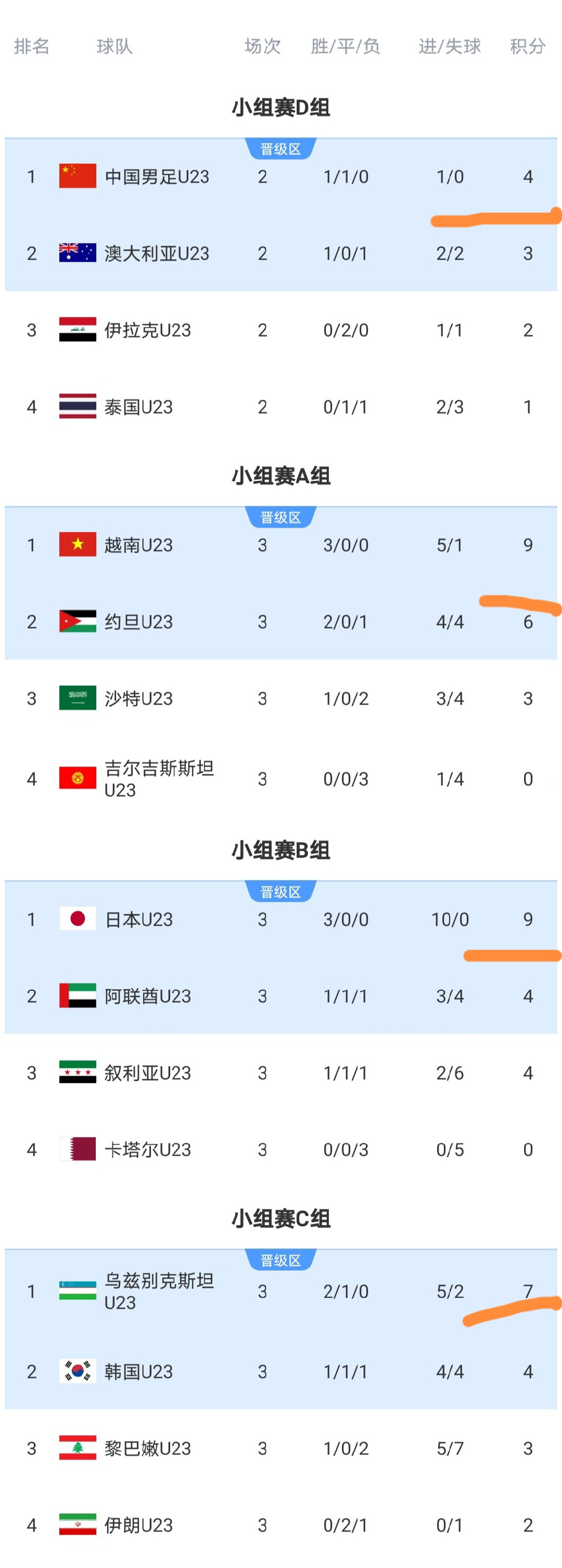 “足球是圆的,绿茵场上从没有绝对的强弱,只有拼到最后的勇者”。2026年亚足联U23亚洲杯于1月7日在沙特拉开战幕,16支亚洲青年劲旅齐聚一堂,为八强席位和最终冠军展开激烈角逐。随着1月13日凌晨两场关键战落幕,日本队2-0完胜卡塔尔,叙利亚1-1战平阿联酋,本届赛事八强已锁定6席,仅剩最后两个名额悬而未决。东道主沙特作为夺冠大热门,却爆冷以1胜2负出局,伊朗、卡塔尔等传统劲旅也纷纷止步小组赛,冷门迭出的战局让赛事充满变数。而这最后两个出线名额,全部来自中国队所在的D组,此前从未在U23亚洲杯小组赛出线的中国队,如今手握1胜1平积4分的优势暂列小组第一,面对1月14日晚与泰国队的生死战,他们能否抓住机会打破历史,昂首挺进八强?