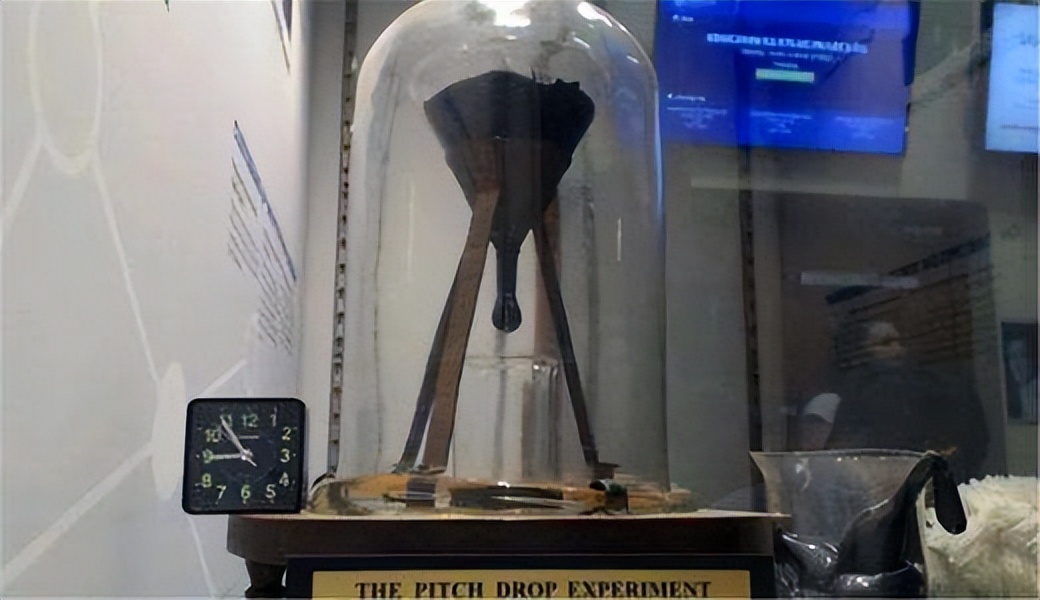 三年之后,教授认为沥青已经完全固化了,将沥青连带着烧杯完全封闭,如果沥青是液体的话,它总会滴落液体,如果沥青是固体的话,那么它不管怎么样都不会滴落。帕内尔教授做这个时间坚持了八年的时间,在这八年的时间里有很多人不理解他,但是他的学生十分支持他,并且还记录了相关的数据,包括了温度等变量对于沥青的影响。