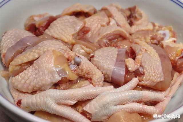 2母鸡清洗切块,放进热水里焯水, 去掉血末,沥干水分