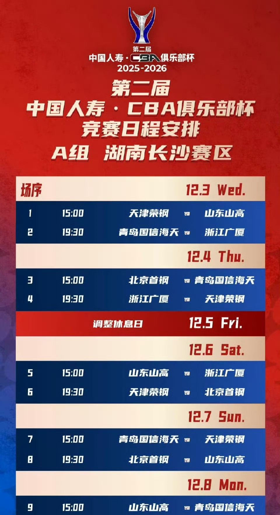 最近几天,山东男篮全队成员都在湖南长沙进行CBA俱乐部杯的比赛,12月5日队长高诗岩到位球队,而球队也行来了一个A组的整体休息日,山东男篮连续两天都没有比赛。12月6日山东男篮迎来俱乐部杯第二战,他们将面对卫冕冠军浙江广厦男篮,另外,山东男篮主场揭幕战门票正式开售,临沂主场对阵四川男篮。