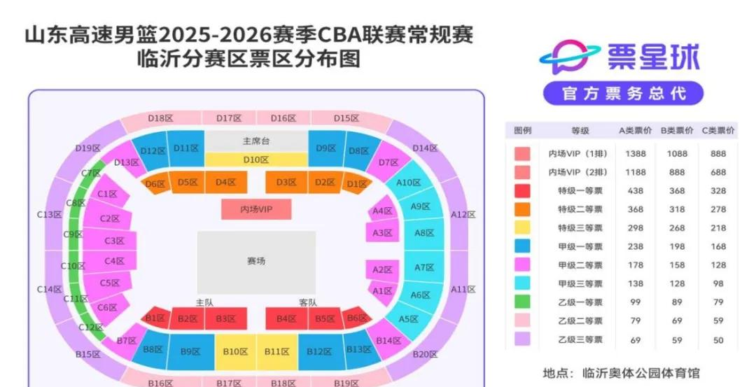 上当是具体票价,门票分为11个等级只要你想去看,什么样的票价都有,最低50元最高1388元,可供选择的范围很广,包厢的分布上方截图里也有,大家可以了解一下。购票方式有两个,第一,微信小程序搜索山东高速篮球俱乐部,第二,票星球小程序,搜山东高速男篮,另外,抖音团购、支付宝和小红书的票星球小程序,搜索山东高速男篮,都能购票。