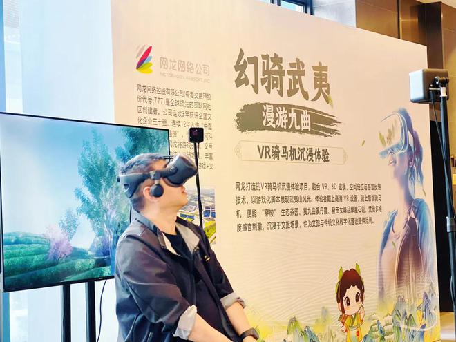 在2025年福建省文旅经济发展大会现场,网龙公司打造的"幻骑武夷·漫游九曲"VR体感项目掀起体验热潮。当体验者佩戴VR设备跨上智能马鞍,武夷山九曲溪的丹霞地貌瞬间铺展眼前,马蹄声与岩茶清香交织成多维感官盛宴。这个集合高精度3D建模与多模态交互技术的项目,不仅成为大会最具人气的科技地标,更昭示着游戏科技与文旅产业深度融合的产业变革。
