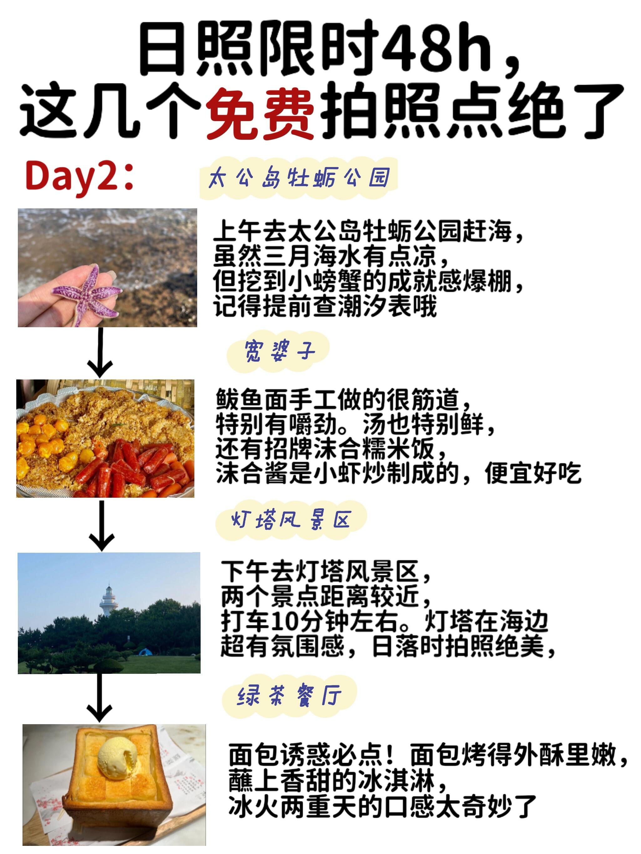 🗻上午去太公岛牡蛎公园赶海,虽然三月海水有点凉,但挖到小螃蟹的成就感爆棚,记得提前查潮汐表哦。