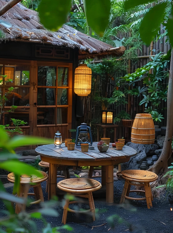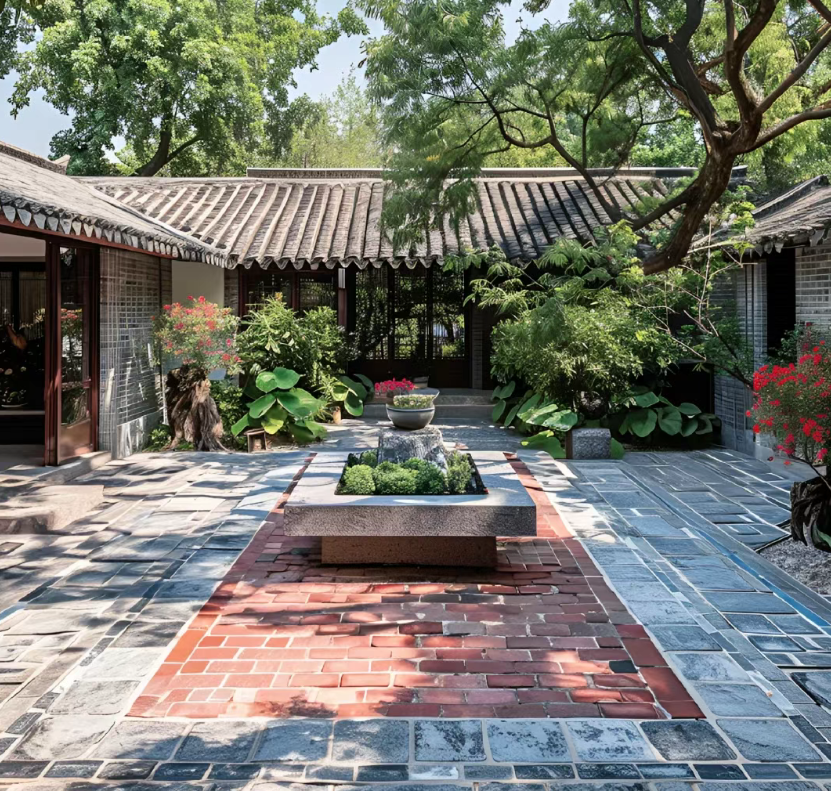 西厢房前支着褪色的靛蓝粗布篷,藤编摇椅旁的红泥小炉煨着陈年普洱。竹筛里晾晒的野菊与薄荷,在穿堂风中交换着药香。忽然有麻雀扑棱棱掠过,碰落了忍冬藤上的露珠,正巧滴在青苔斑驳的貔貅石雕额间。
