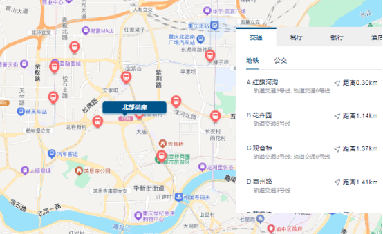 江北区红石路5号,红旗河沟转盘,红旗河沟站轻轨3号线、6号线换乘点。