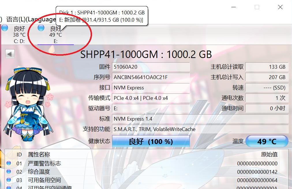 右侧第二块小芯片是它的1Gb缓存芯片,能提升随机读写速度,这是只有高端SSD才配备的。