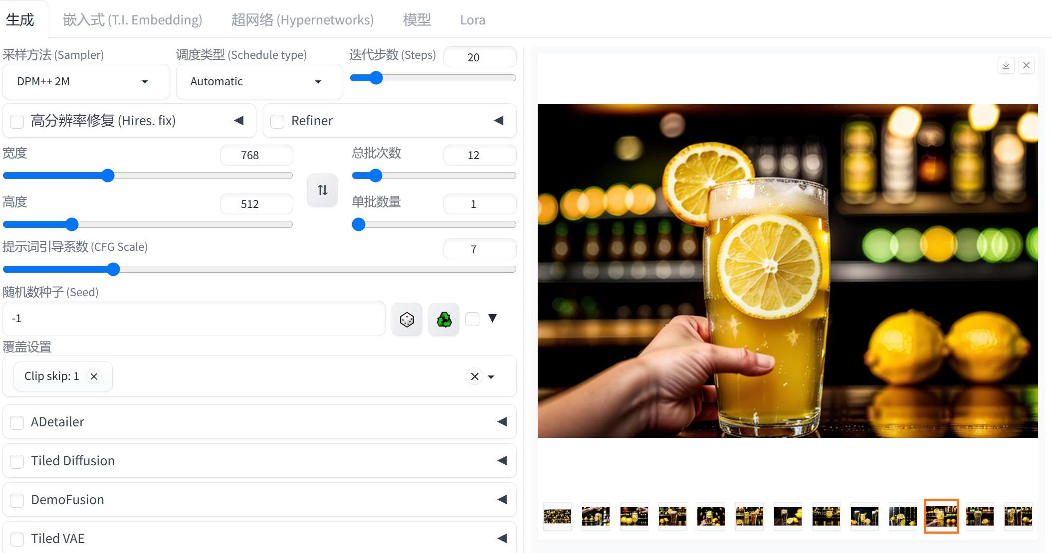 比如,我用来生成12张图片,每张需要迭代39步,整个过程只用了55秒。