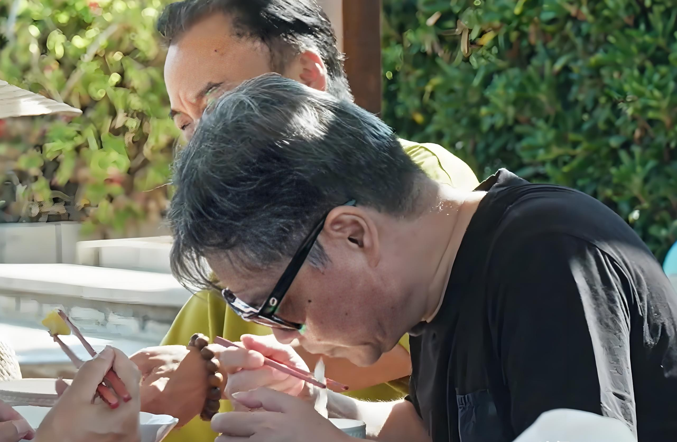 看到面条,余华嘴上说,我们都吃过泡面了,你们不早一点说(告诉我们)。身体却很诚实,小编看到他的喉结动了一下,应该是下意识咽下一口口水。