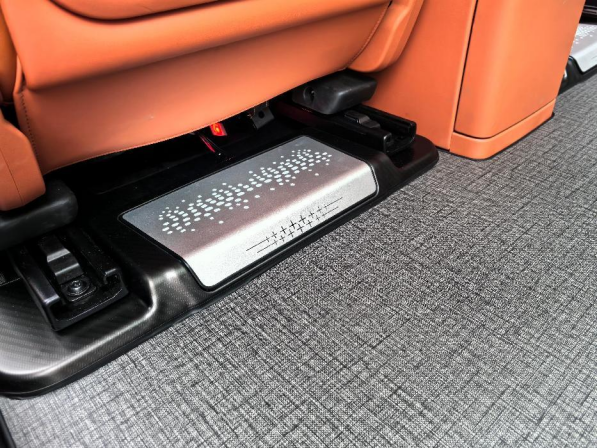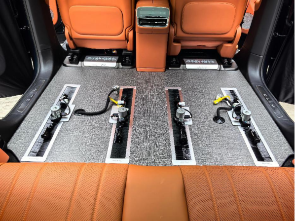 • 定制铝合金饰盖:针对原车中间开孔区域,耗时 300 小时开模定制饰盖,边缘采用 0.2mm 微弧倒角设计,与地板衔接处形成「无死角直角」,远观如整块金属板延伸,近看细节经得起放大镜考验。
