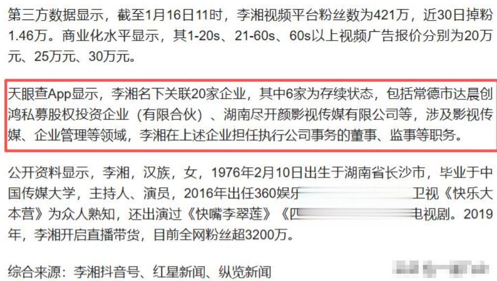 更令人没想到的是,李湘的税务和公司变动存在诸多疑点,这也是大家最关注的一点。