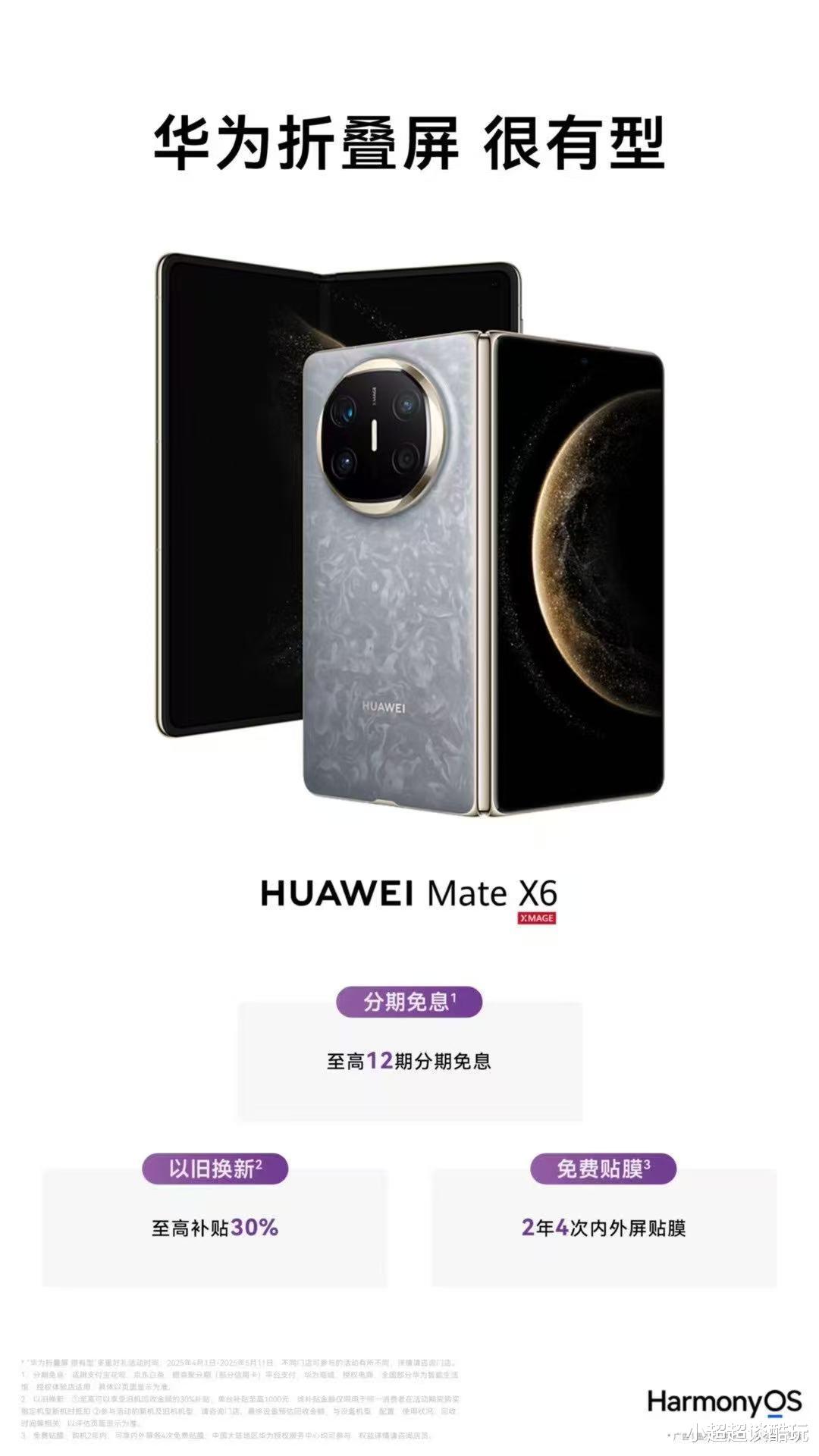 为了让更多用户体验到华为折叠屏家族的魅力,华为特别推出了一系列优惠活动。现在购买华为Mate X6享至高12期分期免息,参与以旧换新至高可补贴30%。华为Pocket 2享至高优惠1500元,华为nova Flip享国补至高优惠1000元,包括华为Mate X5、华为Pura X在内的多款折叠屏,还可享受至高12期分期免息、最高2年4次免费贴膜等权益。