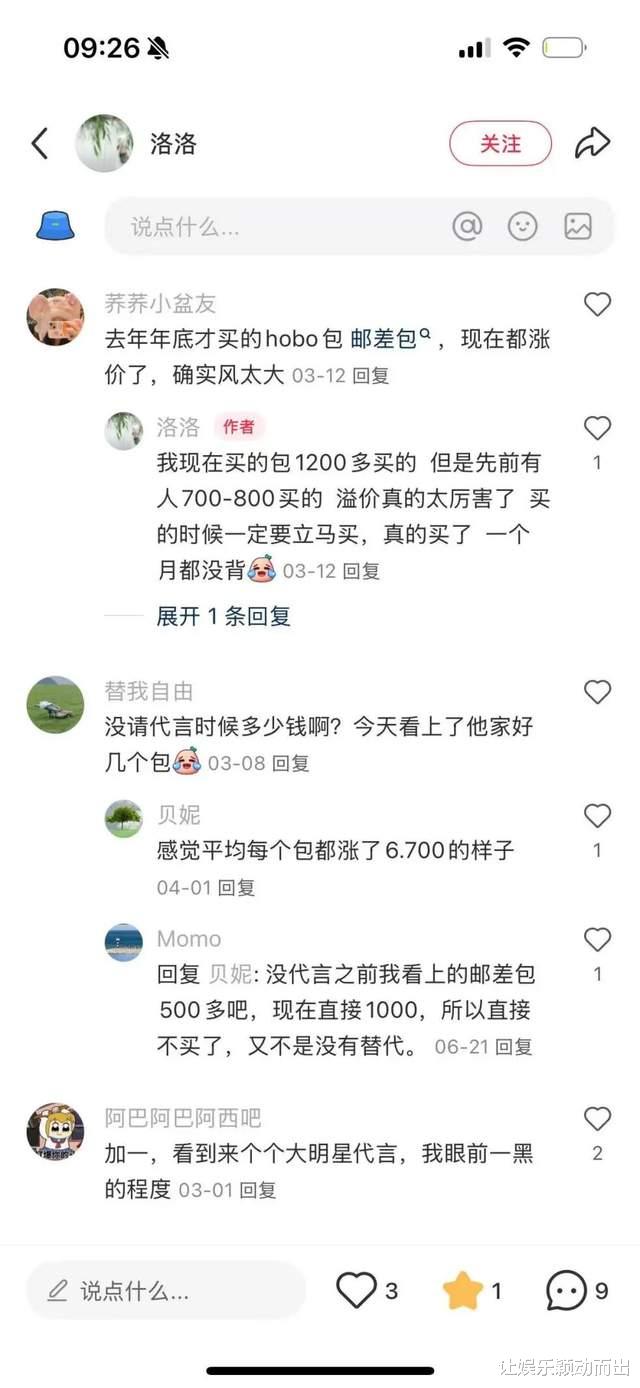 根据小红书用户@洛洛的帖子,裘真“宽宽”2024年618的价格还在860-1099,而2025年的同一时间就涨了将近200元,更是有小红书网友在评论区表明“裘真的包比她们没请代言人之前,要涨了500+”