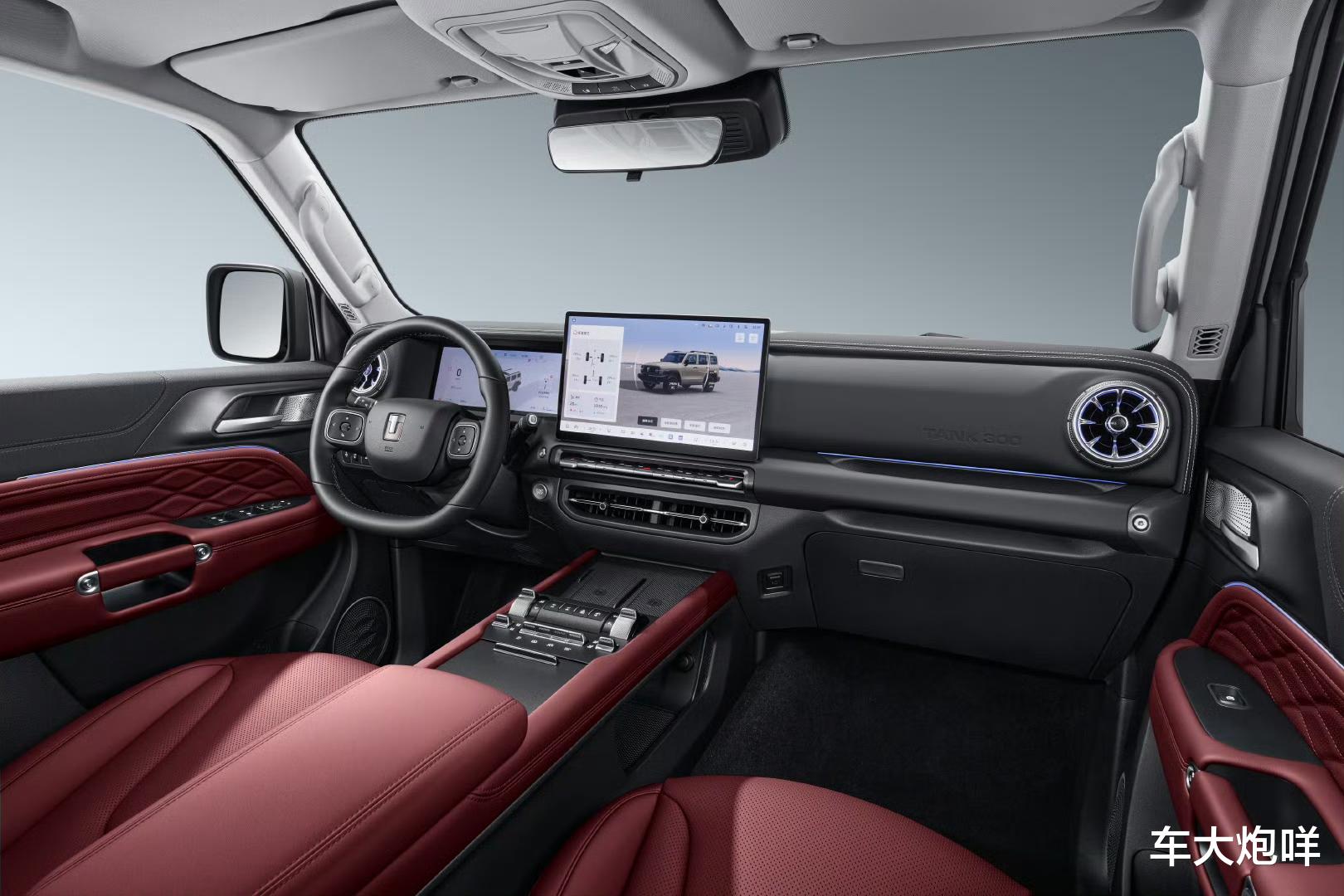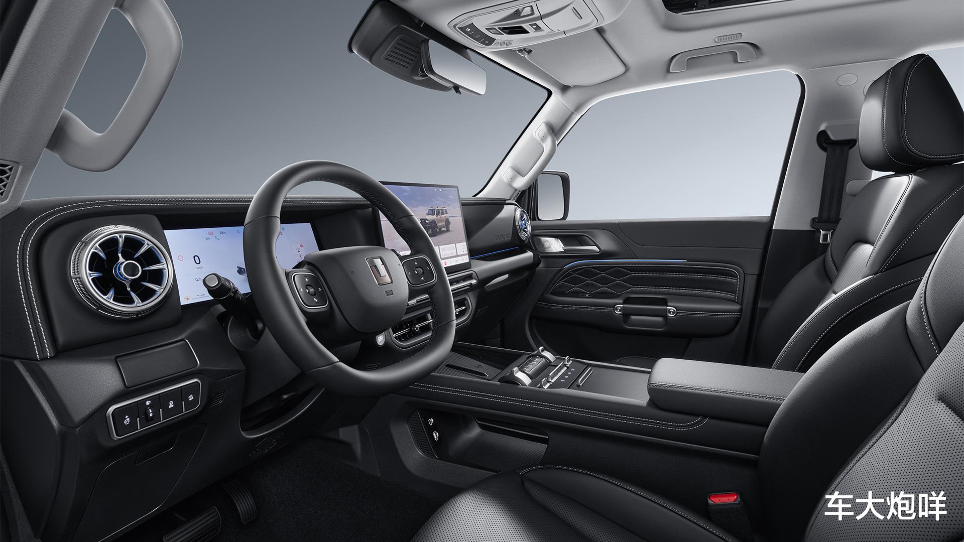 2025款坦克300前排座舱的变化较为明显,搭载全新设计的D型多功能方向盘和电子怀挡,全系采用12.3英寸全液晶仪表与14.6英寸悬浮式中控屏的组合,匹配Coffee OS 3.0智能座舱系统及8155芯片,支持四音区语音识别等功能。在此基础上,2025款坦克300汽油版及柴油版可选黑色、黑红内饰;Hi4-T插电混动版提供黑色、黑灰内饰。