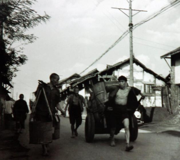 老王早年靠卖衣服维生,独自推着小车,沿街吆喝。