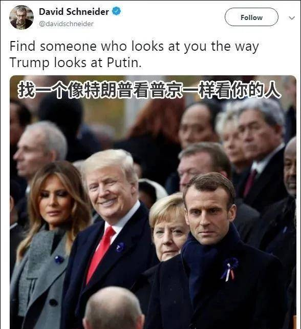 不少西方人当时调侃:找一个像特朗普看普京一样看你的人。