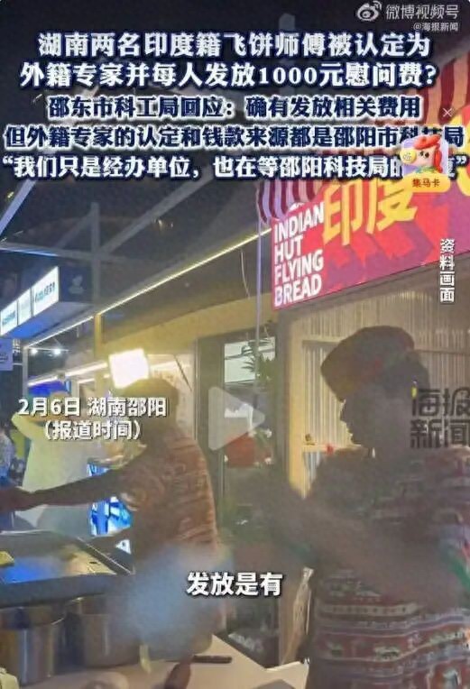 相关阅读:湖南邵阳两名印度籍飞饼师傅被认定为外籍专家,每人发放1000元慰问费?邵阳科技局回应