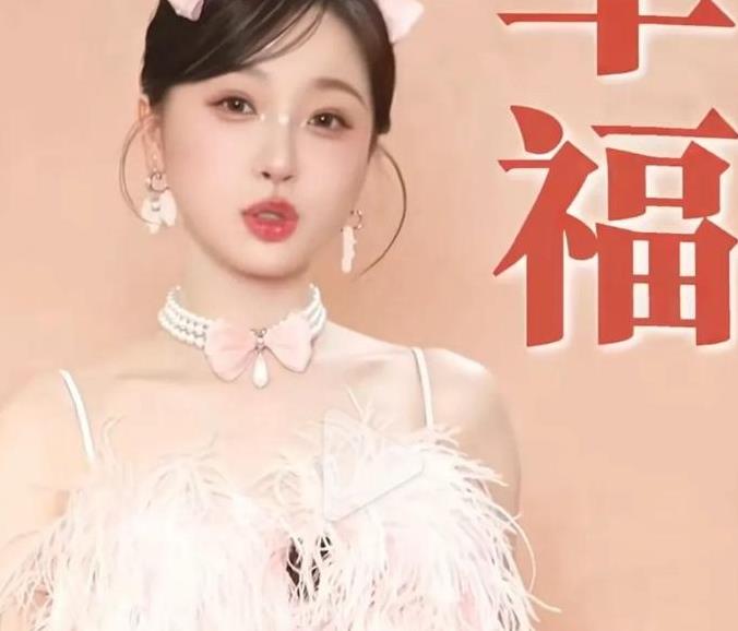 虞书欣今天的穿着粉粉嫩嫩,非常可爱,浑身都是粉红色的元素,两个粉红色的蝴蝶结。她的脖子上挂着一条粉红色的珍珠项链,并且还精心装饰了一个粉红色的蝴蝶结,衣物上覆盖着毛绒绒的毛发。手套上同样保留了白色和粉色的装饰。