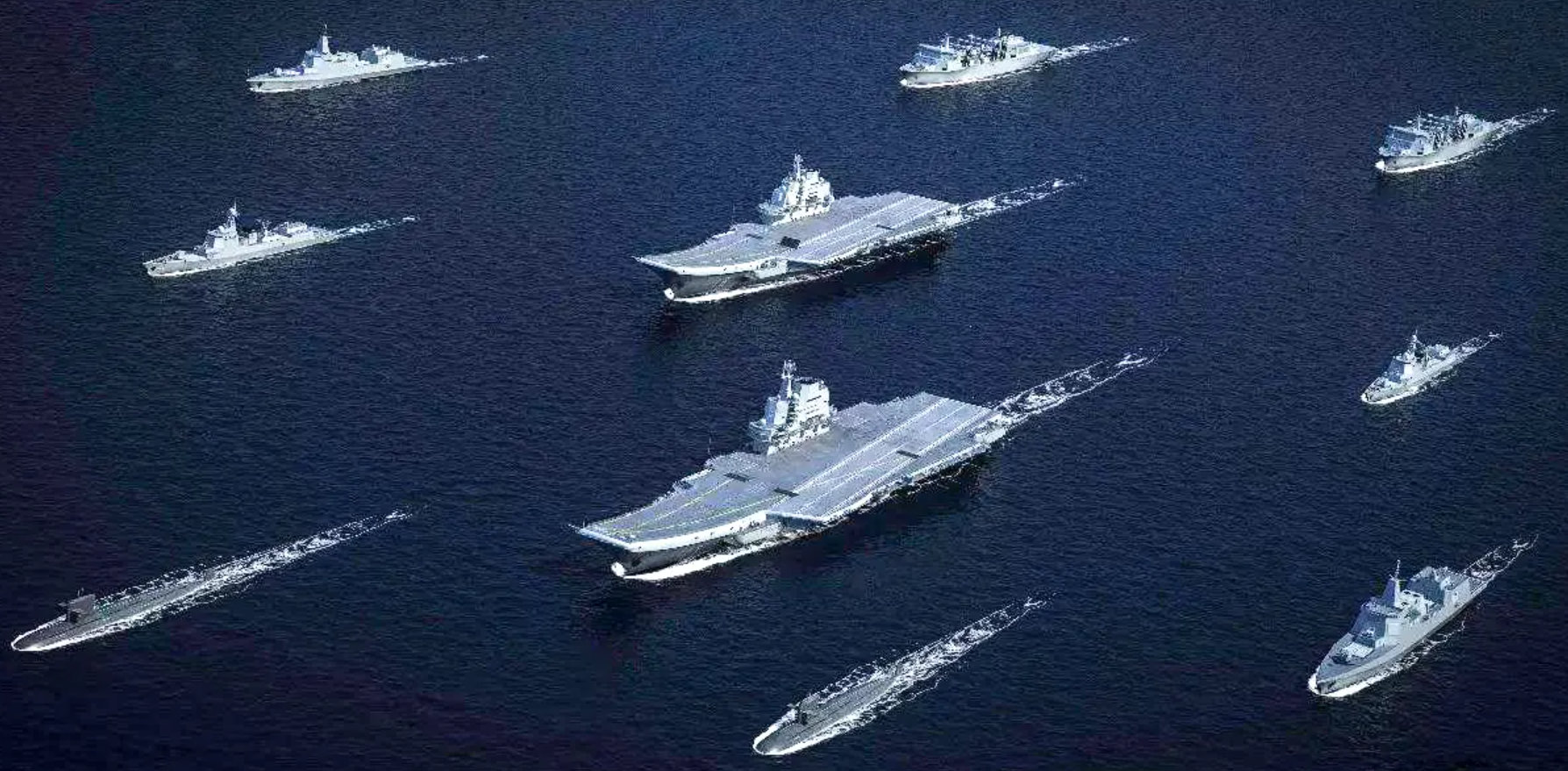 我国双航母编队效果图,图片来自网络