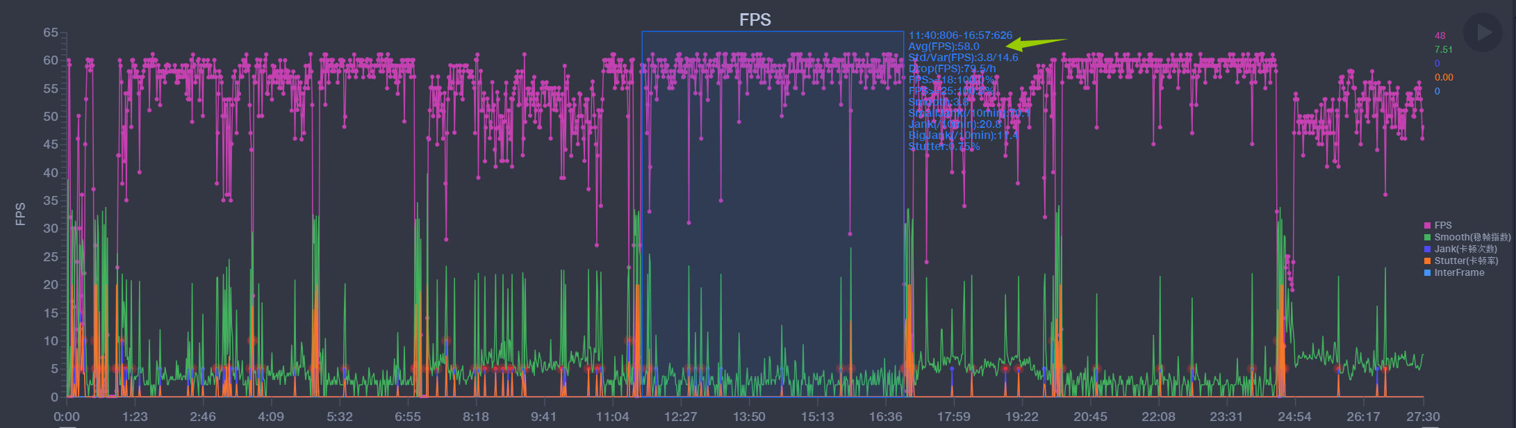 天玑9000+荣耀Turbo调校的加持下,70Pro+的游戏能力是不用担心的。原神实测神庙秘境场景,平均帧率58+。并且荣耀70全系列均支持《王者荣耀》120帧及《和平精英》90帧的高帧游戏体验(待游戏更新)。