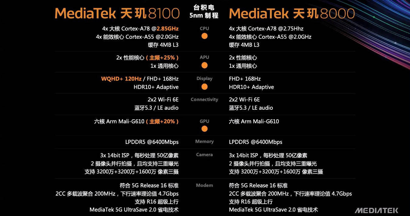 天玑8100 vs 天玑8000