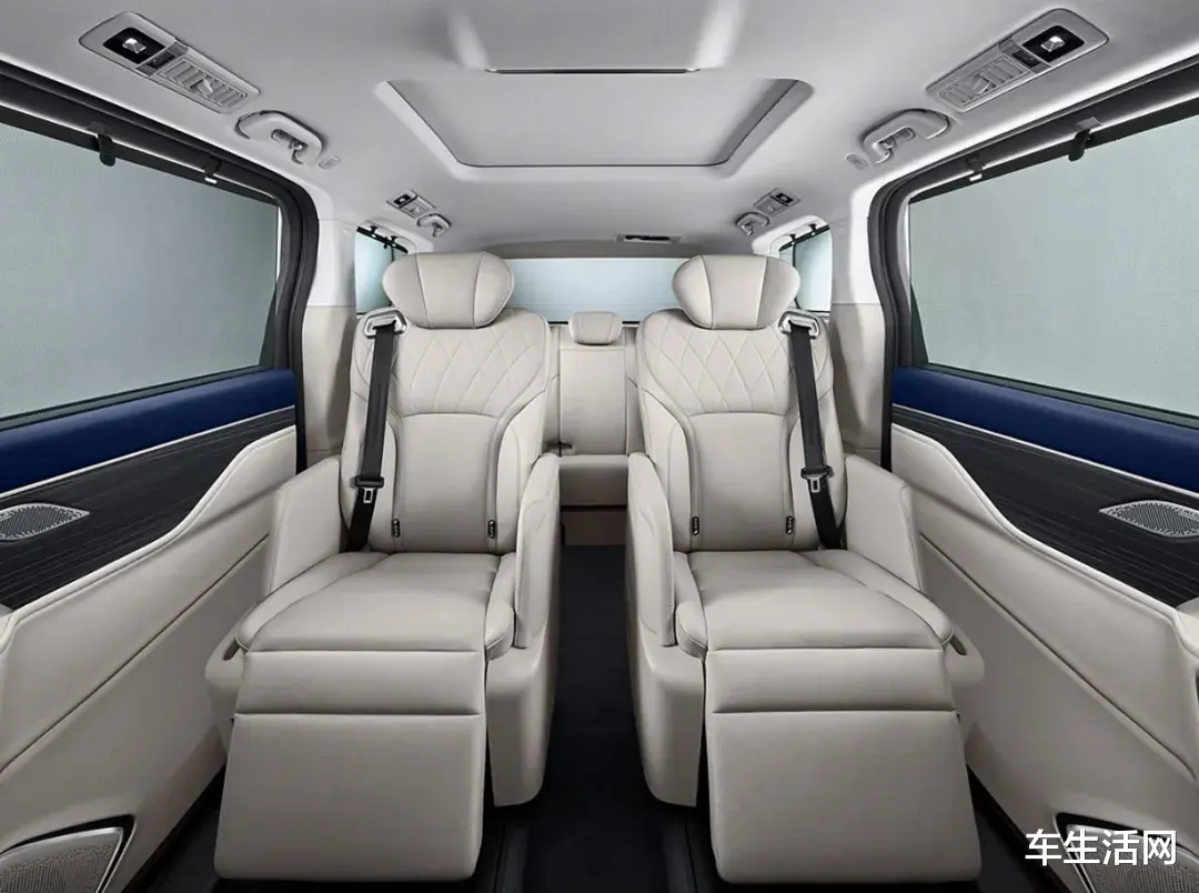 全新高山7、8、9第二排都是独立的座椅,但空间和配置上差异是明显的,二排配备悬浮式零重力NAPPA真皮座椅,标配加热、通风、按摩功能,其中高山9二排可选装航空座椅,可以实现一键躺平,并支持座椅记忆、无线充电。新车还为二排提供了小桌板和冷暖冰箱。高山9车型第三排座椅同样提供电动调节、加热、通风功能。