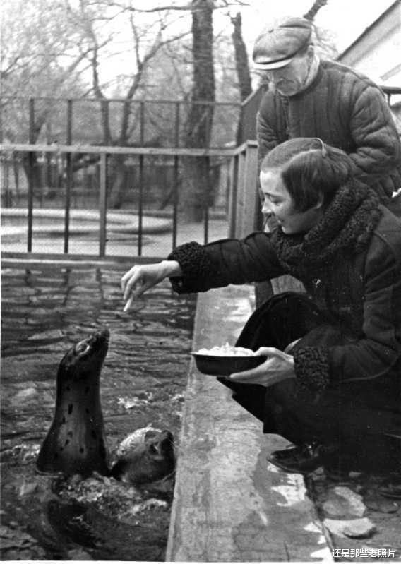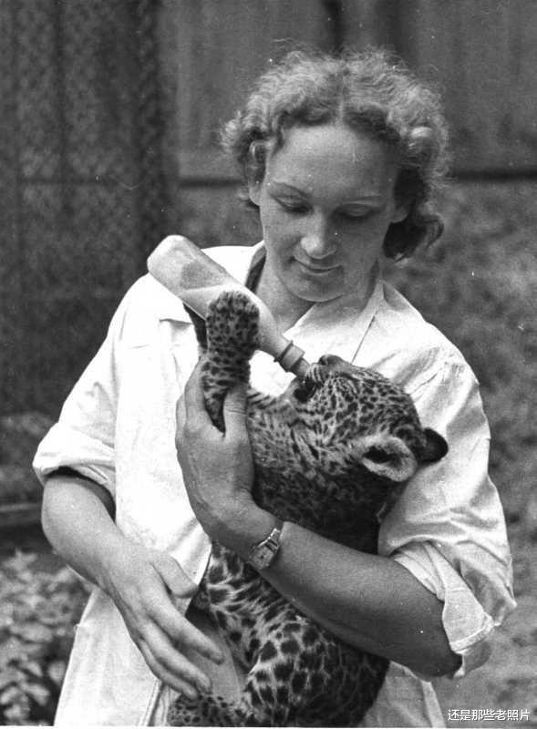 三十年代,苏联莫斯科动物园的饲养员正在喂养动物。