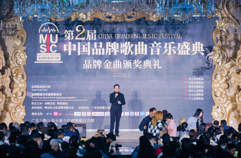 2025年12月27日,由品牌歌曲排行榜、品牌歌曲音乐盛典组委会主办,映山红文化发展有限公司承办,玩呗文化和锐觉演出联合主办,由广东省绿盟公益基金会支持的第二届中国品牌歌曲音乐盛典在广东佛山落下帷幕。典礼现场星光璀璨,高朋满座。近2000位嘉宾齐聚现场,共同见证了这场品牌与音乐交融的荣耀之夜。