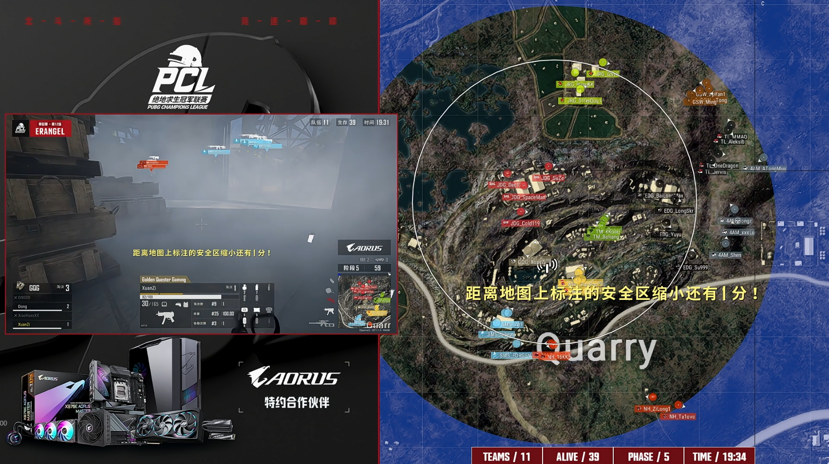 来看第6场比赛,给了个西部矿山圈,LEG很快就和CTG在矿山仓库遭遇,同时六扇门的PeRo和JRG也打了起来,PeRo先被团灭,山上的SMS想收割残局被CTG反打两个后只能撤走,后到的17也想接盘却被CTG完美配合完成2穿4。阶段4圈形刷新,JDG趁CTG去复活人的时机抢占下山顶大仓,还吃了个天命圈,太多队伍盲扎矿山打起大乱斗了,GQG凭借装甲车把CTG的点位抢下来了,阶段5圈形刷新,这将是JDG的大分局。