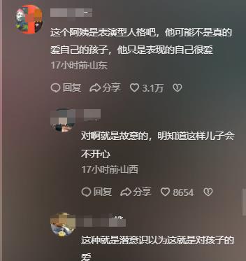 网友亲眼看见,那个男孩的白眼,都快翻到后脑勺了,可见他对他的妈妈是有多么的无语。