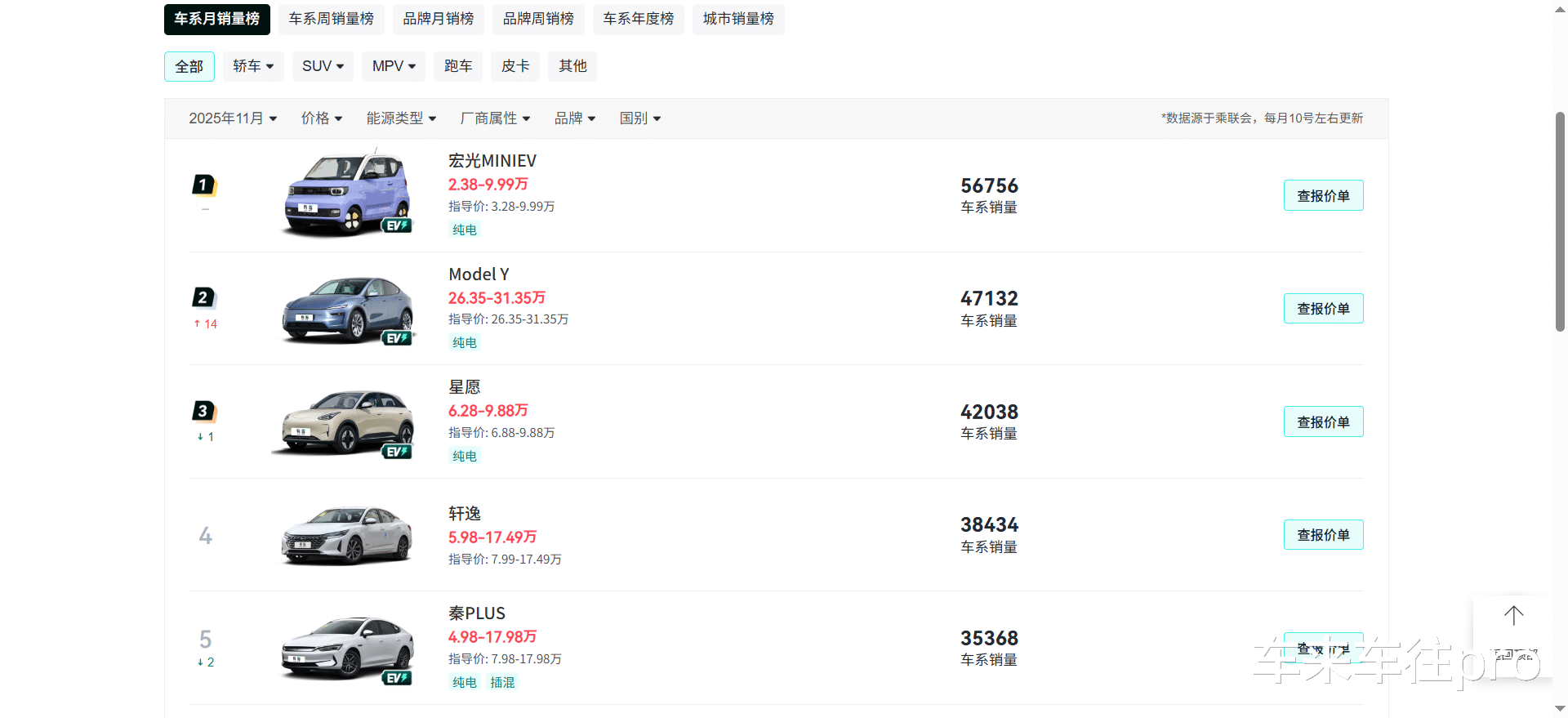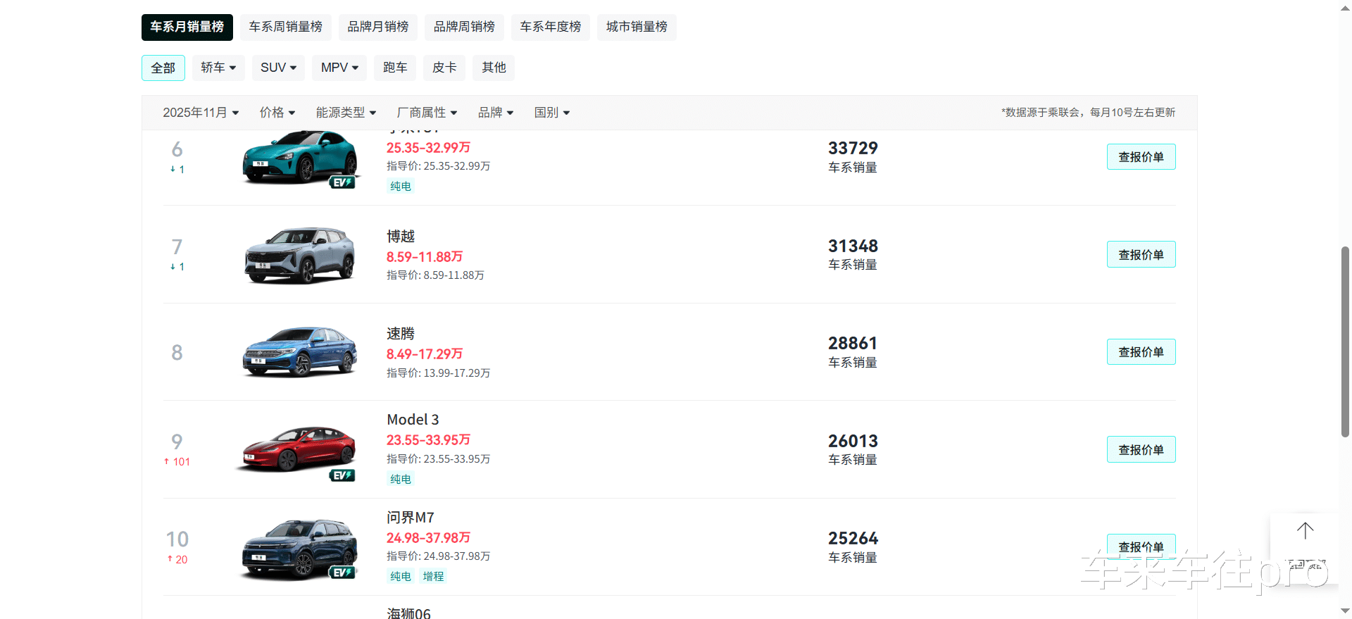但真正值得关注的,其实是榜单背后的结构变化。价格区间、动力形式、用户选择逻辑,都已经发生了明显转向。