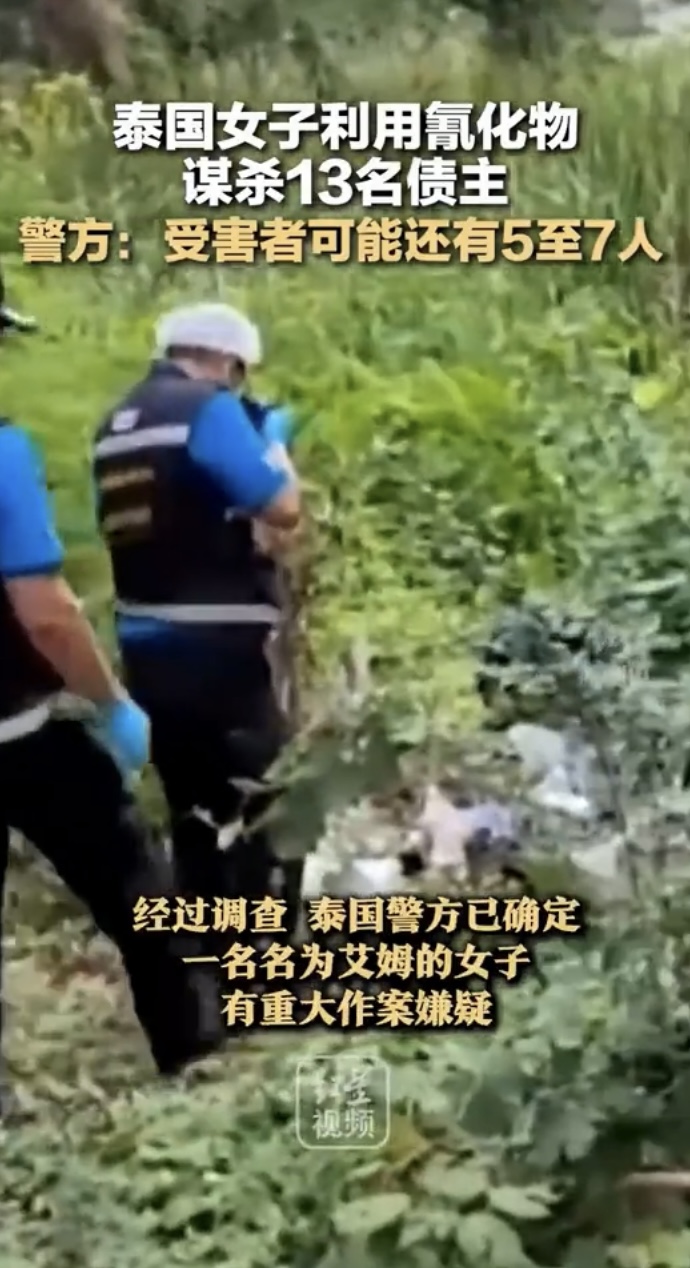4.29日泰国警方公布了一件震惊全国的案件,一名叫艾姆的女性把十三名债主全部毒死,并抢走那些人身上财物,随后逃之夭夭。警察初步调查发现,该女子所用毒物为罕见的氰化物,这种毒剂只要0.1g就可以杀死一个成年人。