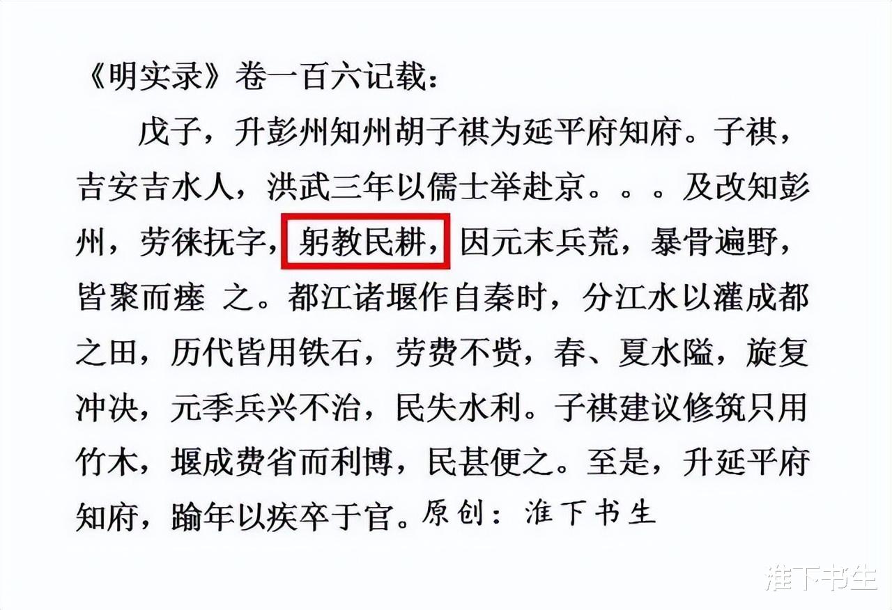 其次,也是最直接的证据,是有官吏正常下乡并被记载的!你像明初延平府知府胡子祺曾为彭州知州,他在任上“躬教民耕”。